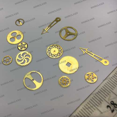 Laser cutting on brass watch gears and needles