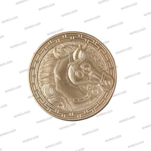 3 axis laser engraving on brass coin horse