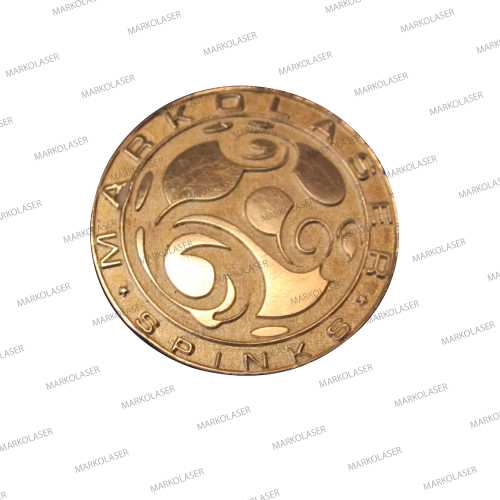 3 axis laser engraving on brass coin Spinks World