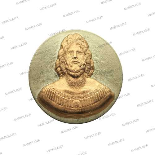 3 axis laser engraving on coin Zeus